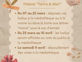 Nous organisons un concours de haikus sur le thème « Terre & Mer » du 07 au 22 mars.